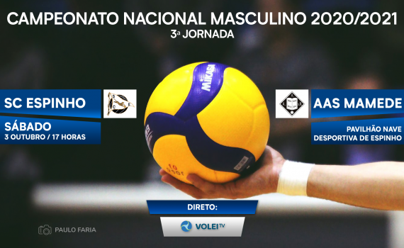 O jogo SC Espinho x AA S. Mamede, da 1.ª Fase do Campeonato Nacional da I Divisão – seniores masculinos, realiza-se no dia 3 de Outubro (sábado) e será transmitido em directo (17h00) na Volei TV. Este jogo da 3.ª jornada da época de 2020/2021 terá por palco a Nave Desportiva de Espinho. 3.ª […]