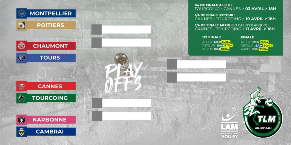 Nos dias 3 e 11 de Abril, o Tourcoing defronta o AS Cannes, 2.º classificado na fase regular.