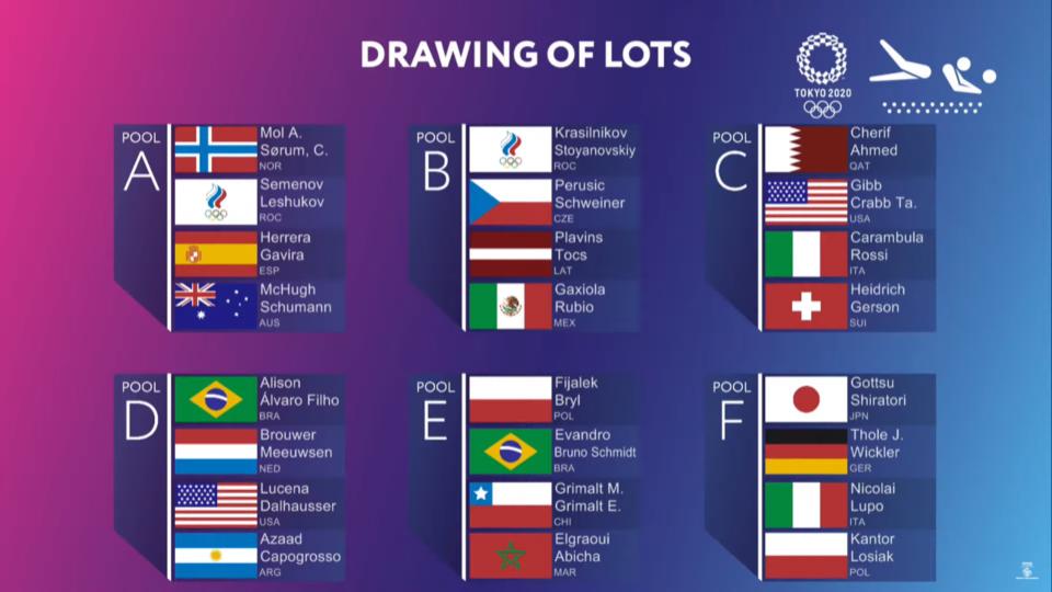 Embora as duplas brasileiras e norte-americanas sejam sempre candidatas aos títulos, uma boa dose de favoritismo também recai em duplas europeias como as de Mol A./Sorum, C. (Noruega), Krasilnikov/Stoyanovskiy (Representantes do Comité Russo) e Brouwer/Meeuwsen (Holanda), em masculinos, e de Heidrich/Vergé-Dépré (Suíça), A., Makroguzova/Kholomina (ROC) e Ludwig/Kozuch (Alemanha), em femininos.