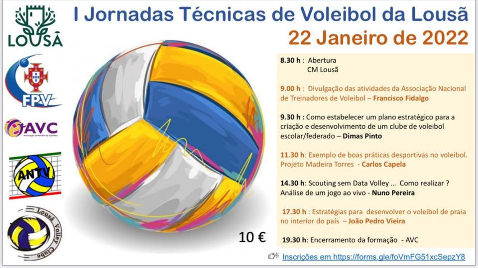 As «I Jornadas Técnicas de Voleibol da Lousã», evento promovido pela Associação de Voleibol de Coimbra e pelo Lousã Volley Clube, com a colaboração da Federação Portuguesa de Voleibol e da Associação Nacional de Treinadores de Voleibol e o apoio da Câmara Municipal da Lousã, estão agendadas para este sábado (22 de Janeiro), na Biblioteca Municipal da Lousã.