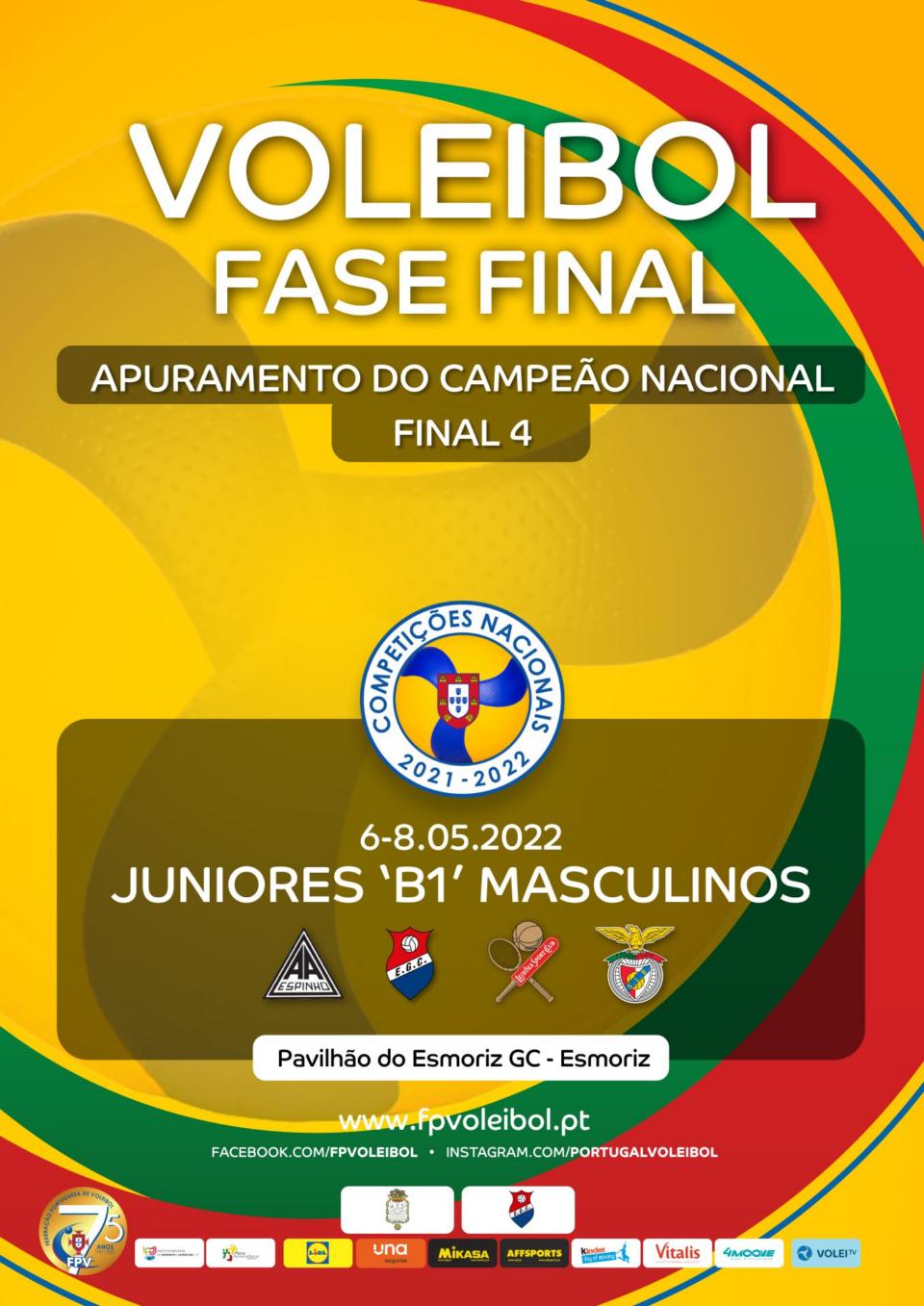 A Fase Final – Apuramento do Campeão Nacional de Juniores B1 Masculinos realiza-se de 6 a 8 de Maio no Pavilhão do Esmoriz GC e contará com a transmissão de jogos por parte da Volei TV.