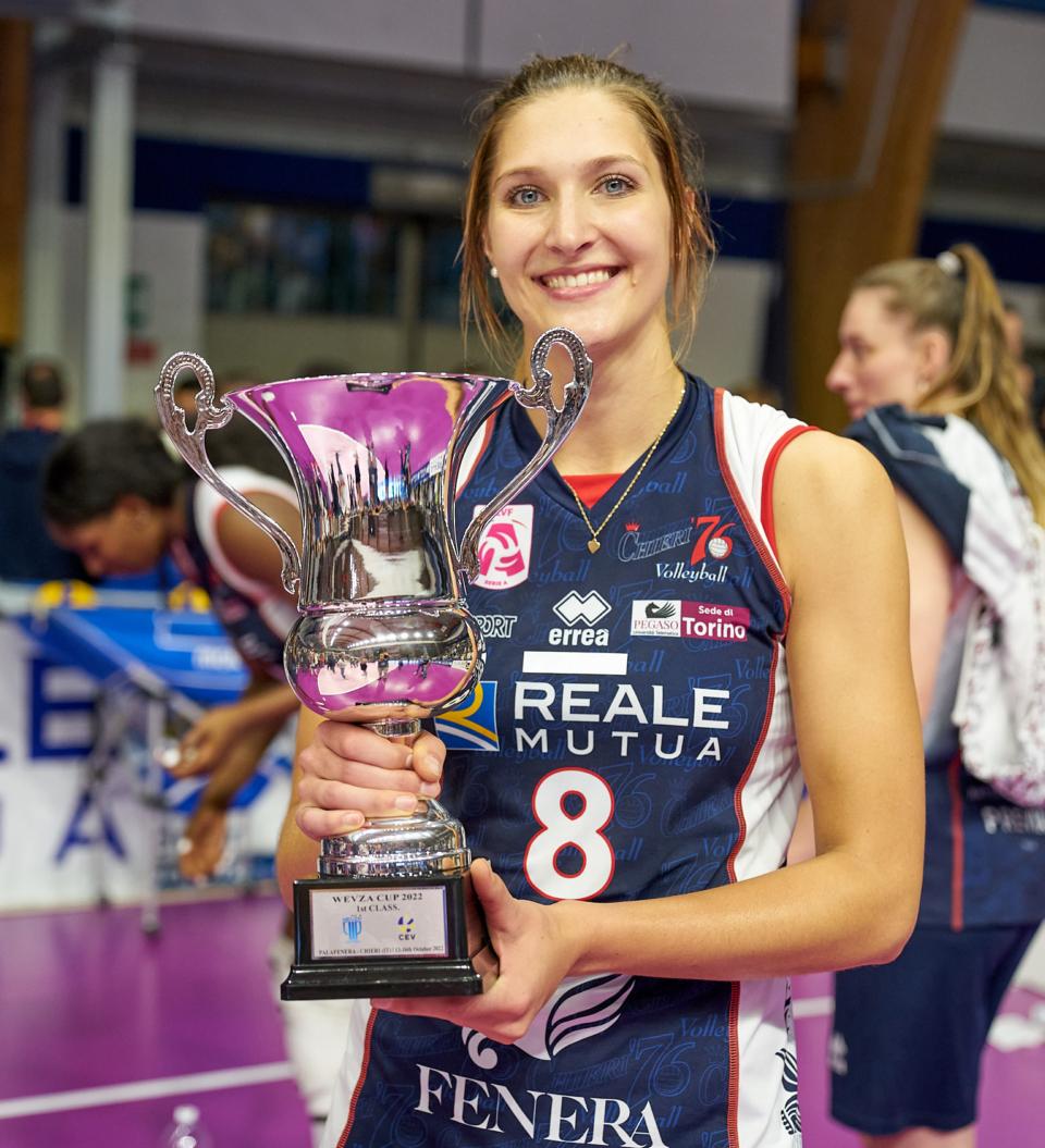 Kaja Grobelna, oposta do Chieri, recebeu o troféu da primeira WEVZA Cup Women.
