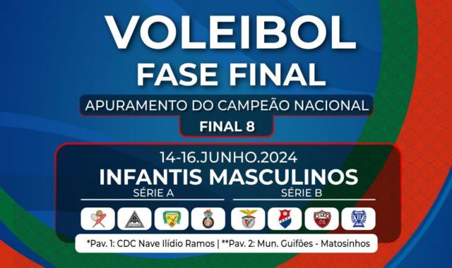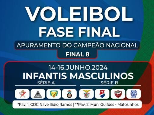 O sorteio da 1.ª Fase do Campeonato Nacional de Juniores B Masculinos, que será disputada numa série única, realiza-se hoje às 18h00, por videoconferência, e envolve 10 equipas: CN Ginástica, Famões CA, Grupo MTBA, Odivelas SC, Ac. Mateus Nogueira, CD Alverca Vólei, Colégio Pedro Arrupe, Sintra Vólei, Sporting CP e SC Caldas.
