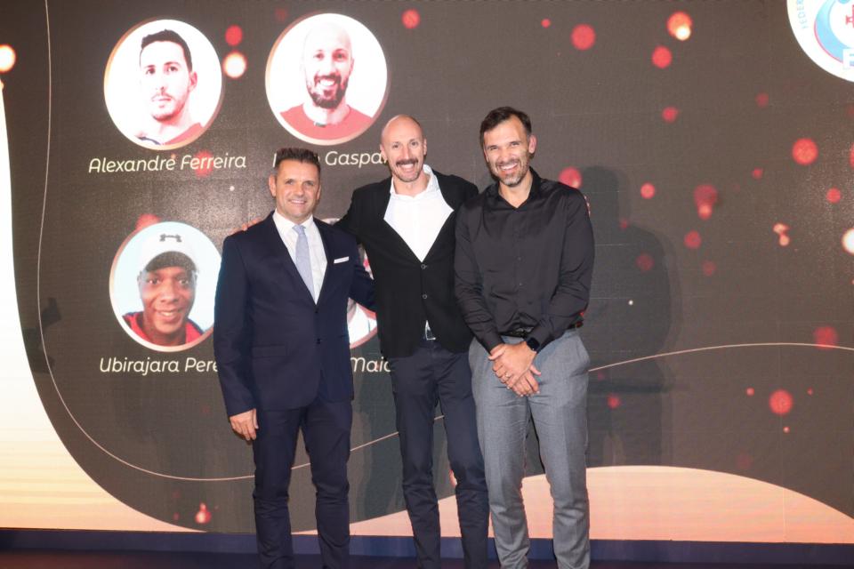 E depois dos capitães, os timoneiros das selecções… os treinadores das selecções nacionais: o actual Seleccionador Nacional dos seniores femininos, Hugo Silva, recebeu o prémio em representação de todos os Treinadores das Selecções Nacionais.