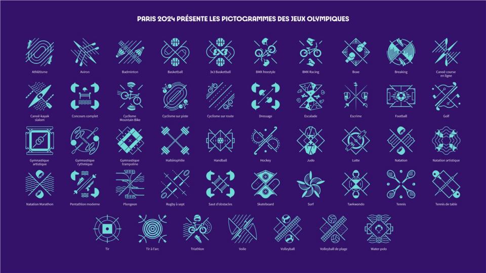 Os organizadores revelaram os 47 pictogramas diferentes, cada um dos quais significa “uma medalha de honra”, representando não apenas uma modalidade, mas também “uma família, um sentimento de orgulho, um conjunto de valores e uma comunidade”.