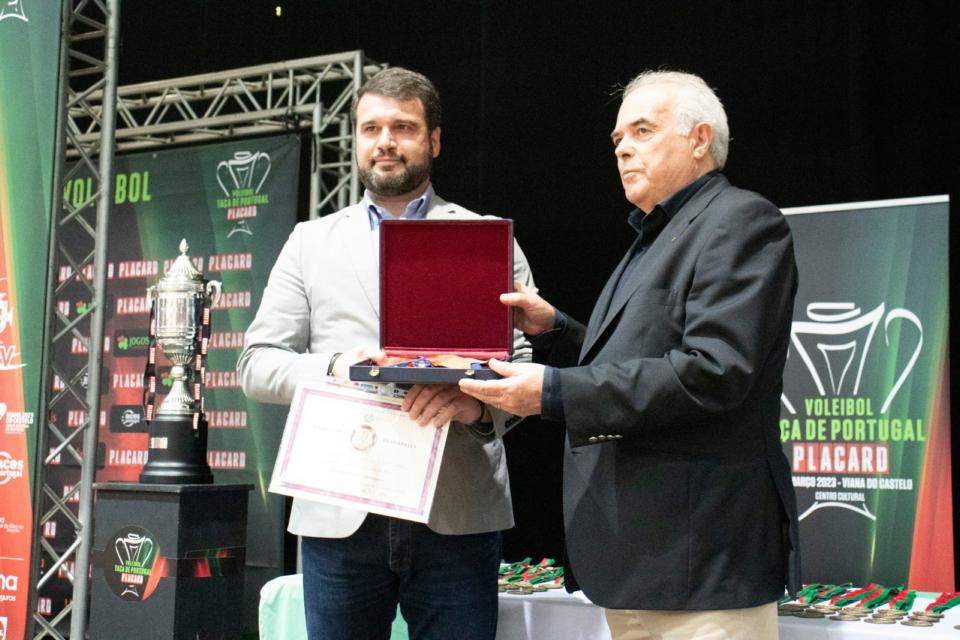 A entrega da medalha teve por palco o Centro Cultural de Viana do Castelo, Cidade Europeia do Desporto 2023, e ocorreu antes da Final da Taça de Portugal Placard, que a equipa de seniores masculinos do Sport Lisboa e Benfica venceu ao derrotar (3-0: 25-21, 25-19 e 25-18) a Associação de Jovens da Fonte do Bastardo.