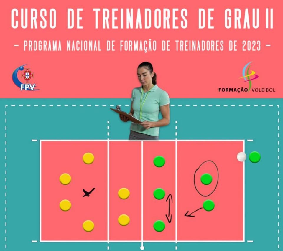 No âmbito do Programa Nacional de Formação de Treinadores de 2023, a Federação Portuguesa de Voleibol (FPV) prevê realizar, de 31 de Maio a 30 de Junho, mais um curso para treinadores, no caso concreto um Curso de Treinadores de Grau II na Área Metropolitana do Porto e Zona Norte, cujo período de inscrição se encontra aberto até ao dia 15 de Maio (segunda-feira).