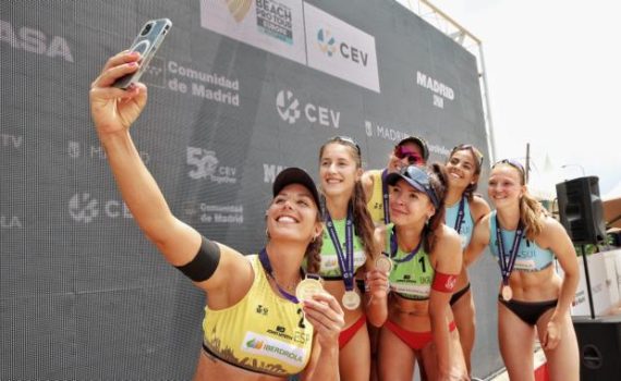 As espanholas Liliana Fernández Steiner e Paula Soria Gutiérrez ergueram o troféu de vencedoras do Beach Pro Tour Futures de Madrid, realizado na capital espanhola, ao derrotarem (2-0: 21-15 e 22-20) as ucranianas Diana Lunina e Tetiana Lazarenko na final. Beatriz Pinheiro e Inês Castro ocuparam o 9.º posto final, […]