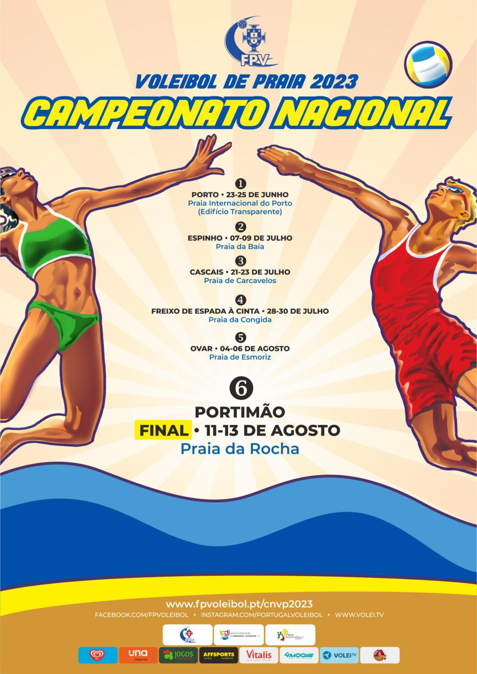 Ao todo, no Campeonato Nacional de Voleibol de Praia serão realizadas seis etapas, sendo que a 6.ª e última etapa é considerada a Final do CNVP 2023 e começa a ser disputada amanhã na Praia da Rocha, em Portimão, Algarve.