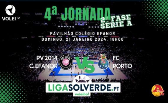 A Volei TV vai transmitir em directo o PV 2014/Colégio Efanor x FC Porto, da Liga Solverde.pt, no dia 21 de Janeiro (domingo). Este jogo referente à 4.ª jornada da Série A da 2.ª Fase da Liga Solverde.pt está agendado para as 18h00, no Pavilhão do Colégio Efanor, e pode ser […]