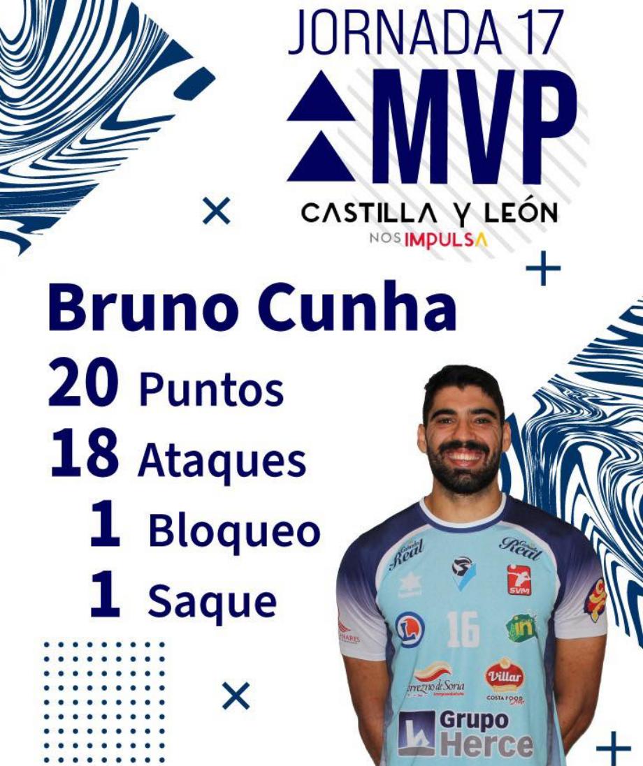 Em Espanha, o Grupo Herce Soria (CDV Río Duero Soria), de Bruno Cunha, triunfou pela diferença maior (3-0: 25-15, 25-23 e 25-22) na recepção ao UPV Leleman Conqueridor e subiu à vice-liderança da Superliga espanhola.