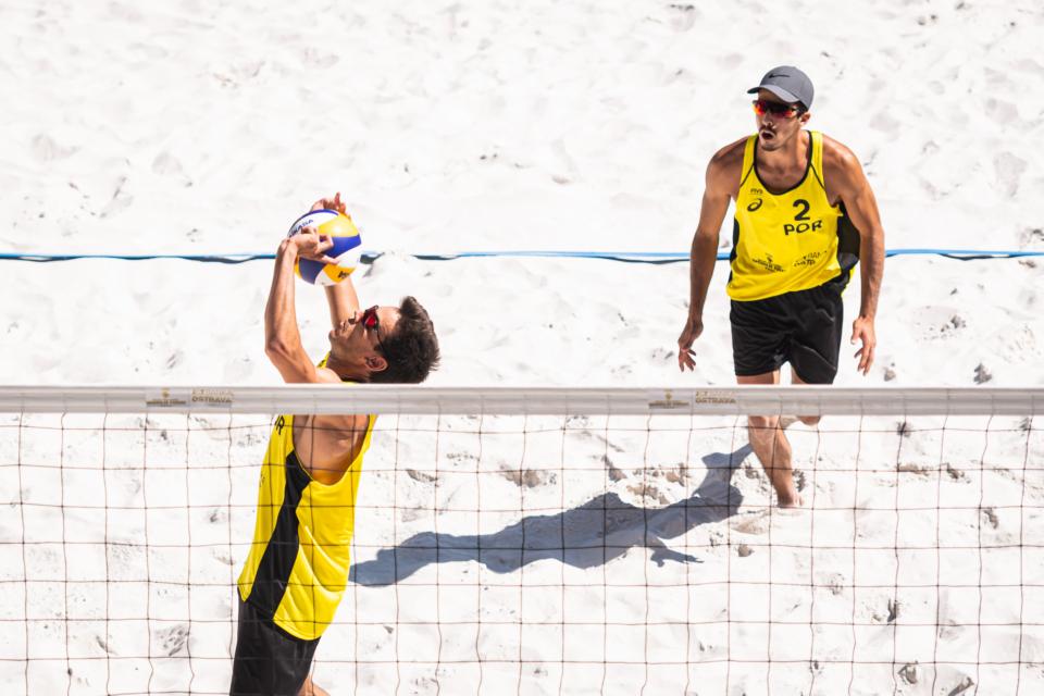 Hoje, os bicampeões nacionais não começaram bem o dia, tendo perdido (1-2: 21-18, 18-21 e 13-15) com a dupla norte-americana Trevor Crabb/Theodore Brunner, no primeiro jogo da Pool C do Quadro Principal, mas emendaram a mão no jogo seguinte, frente aos austríacos Moritz Pristauz e Robin Seidl, atletas que venceram, no final de 2023, os BPT Challenge de Nuvali (Filipinas) e de Goa (Índia).