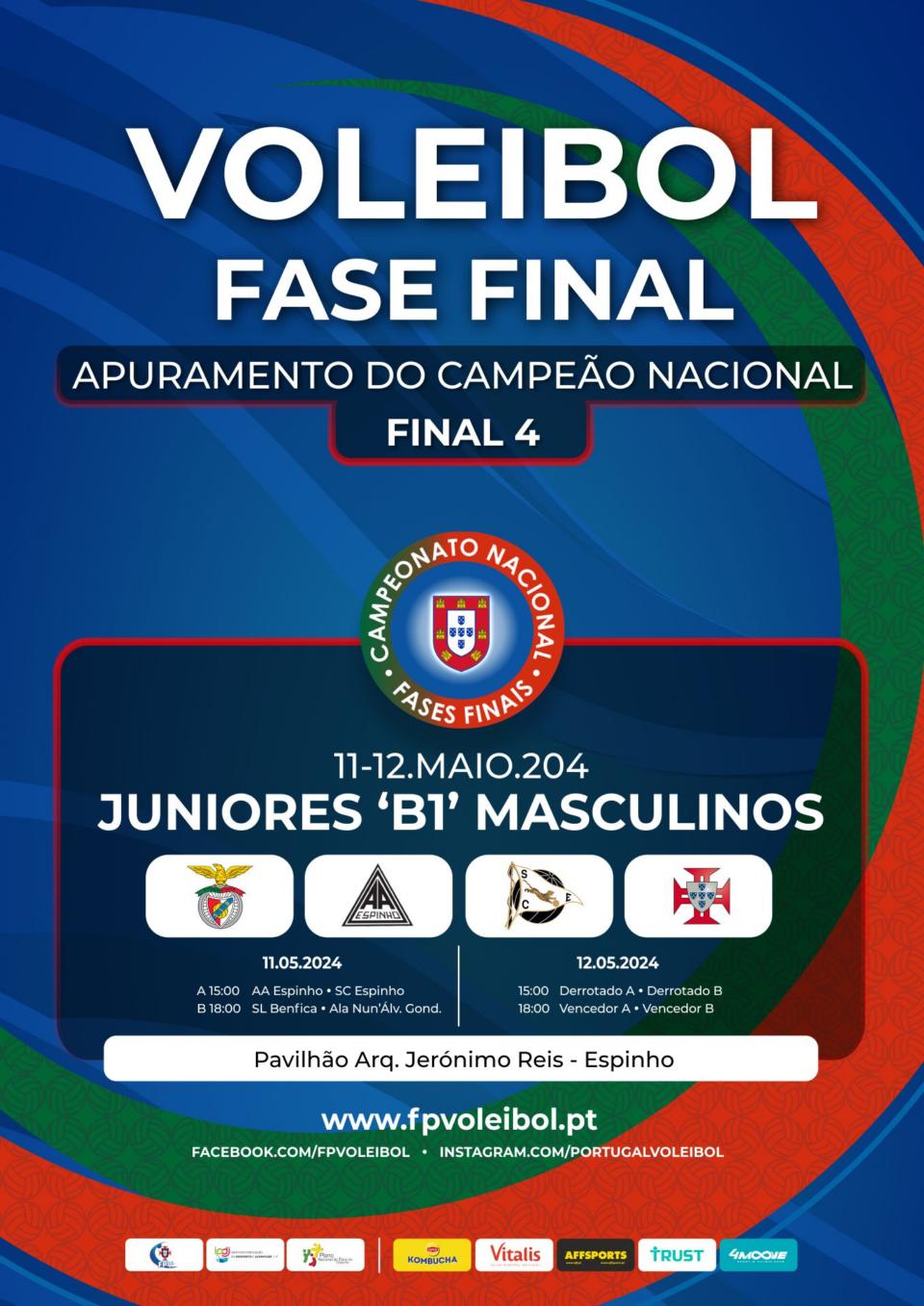 A Fase Final do Campeonato Nacional de Juniores B 1 Masculinos da época de 2023/2024 realiza-se no Pavilhão Arq. Jerónimo Reis, em Espinho, nos dias 11 e 12 de Maio.