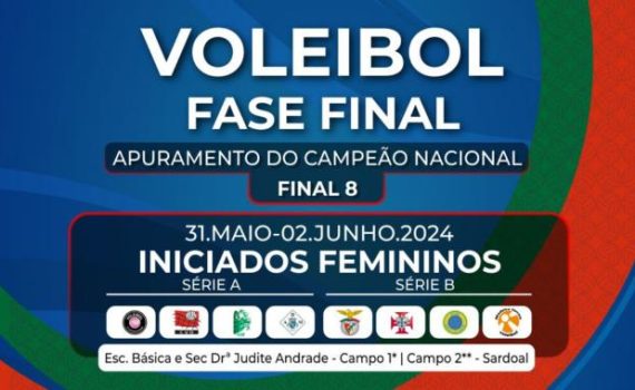 A Fase 8 do Campeonato Nacional de Iniciados Femininos da época de 2023/2024 realiza-se no Pavilhão da EBS Dr.ª Judite Andrade, no Sardoal, entre os dias 31 de Maio e 2 de Junho. Todas as informações em https://fpvoleibol.pt/fpv/competicoes/fases-finais-2023-2024/