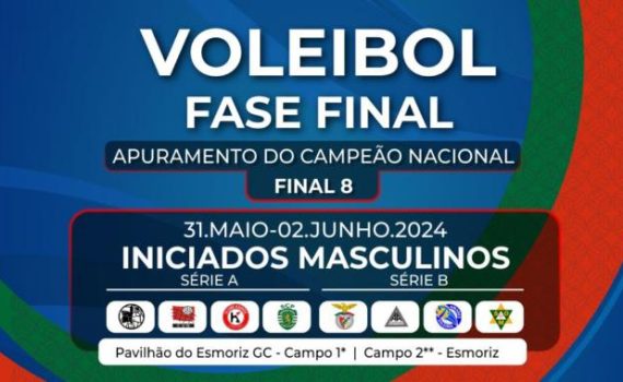 A Fase Final do Campeonato Nacional de Iniciados Masculinos da época de 2023/2024 realiza-se no Pavilhão do Esmoriz Ginásio Clube, nos dias 31 de Maio a 2 de Junho. Todas as informações em https://fpvoleibol.pt/fpv/competicoes/fases-finais-2023-2024/