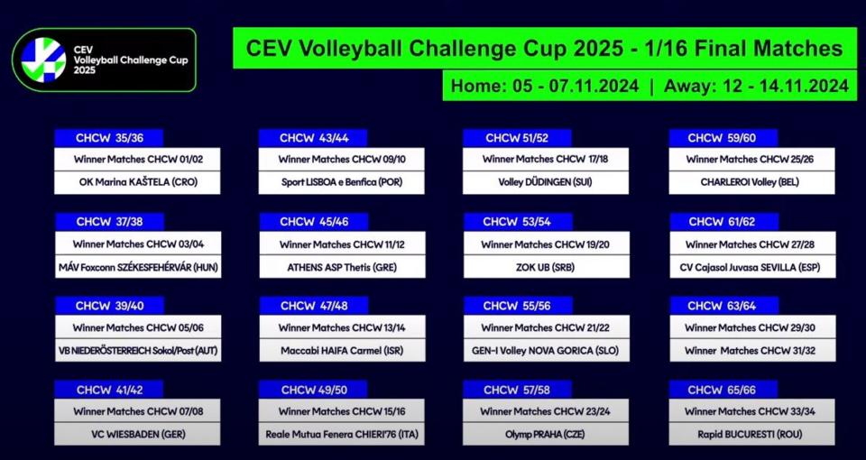 Se superar a formação romena, o Sporting CP defrontará os checos do Kladno Volejbal nos 16 avos-de-final, agendados para Novembro.