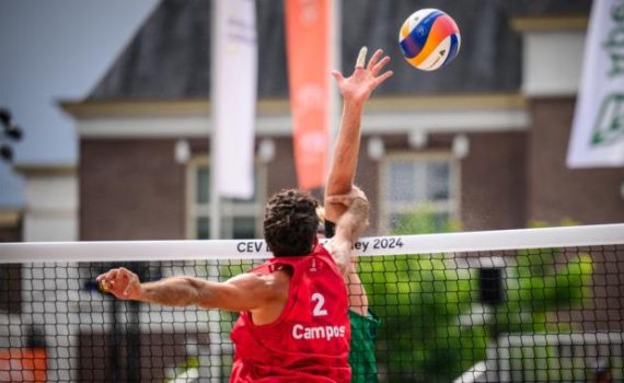Tricampeões portugueses João Pedrosa e Hugo Campos em acção no CEV EuroBeachVolley. A dupla de Voleibol de Praia portuguesa João Pedrosa e Hugo Campos estreou-se hoje no Campeonato da Europa de Seniores em Voleibol de Praia, a disputar em Haia, Arnhem e Apeldoorn, nos Países Baixos até 18 de Agosto. […]