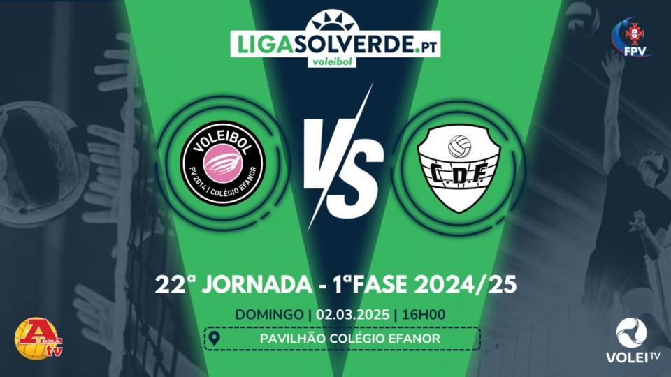 16h00 – PV 2014/Colégio Efanor x CD Fiães, no Pav. Colégio Efanor – em directo na Volei TV e A Bola TV