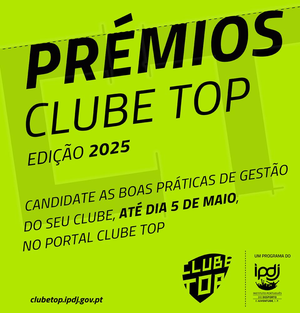 O Instituto Português do desporto e Juventude (IPDJ) encontra-se a promover mais uma edição dos Prémios CLUBE TOP – Boas Práticas na Gestão de Clubes Desportivos.