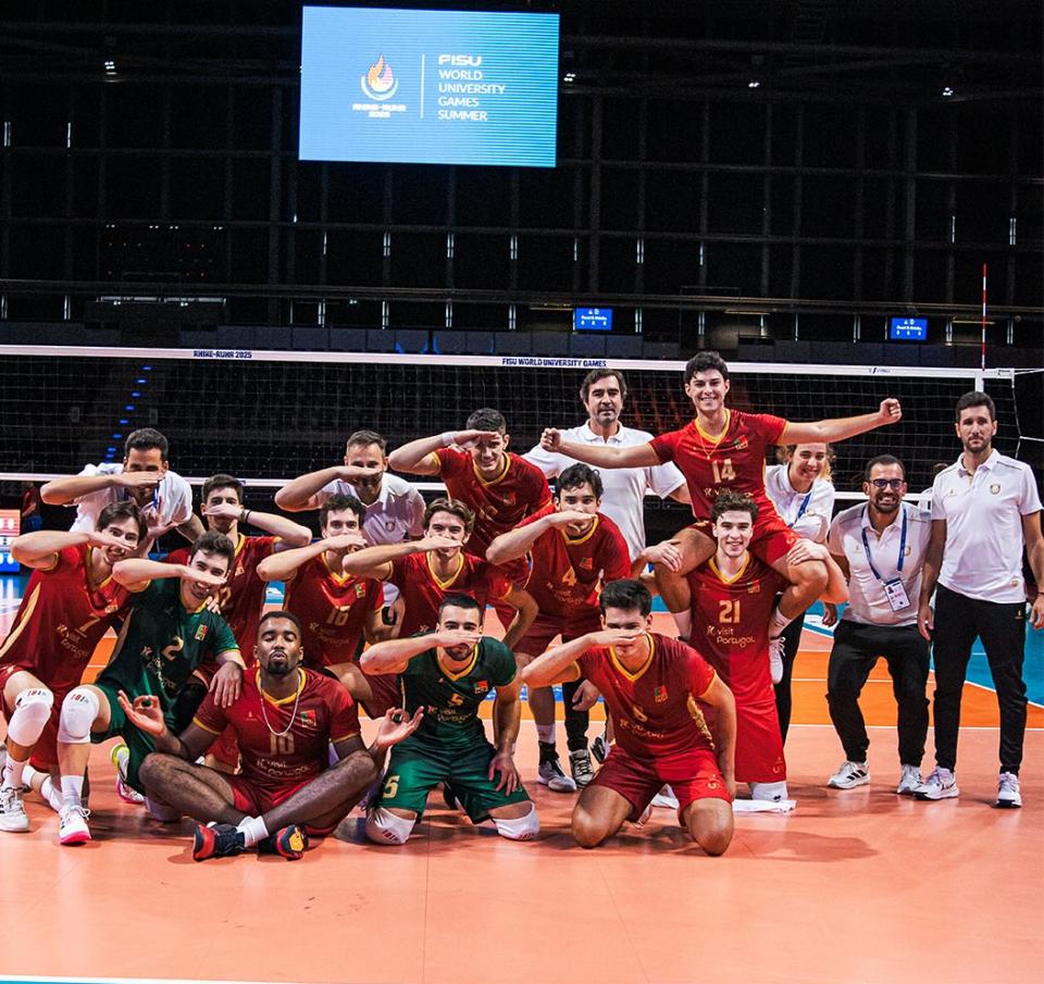 A Selecção Portuguesa de Universitários, orientada por João Franco, venceu hoje a Austrália num jogo complicado e com alguns momentos dramáticos – 3-2 (25-16, 21-25, 19-25, 25-23 e 20-18) – e mantém acesa a esperança de atingir uma posição entre as oito melhores selecções dos Jogos Mundiais Universitários de Verão, que estão a decorrer até 27 de Julho na localidade alemã de Rhine-Ruhr. Amanhã, pelas 12h50, Portugal defronta a China Taipé. Ver jogo AQUI