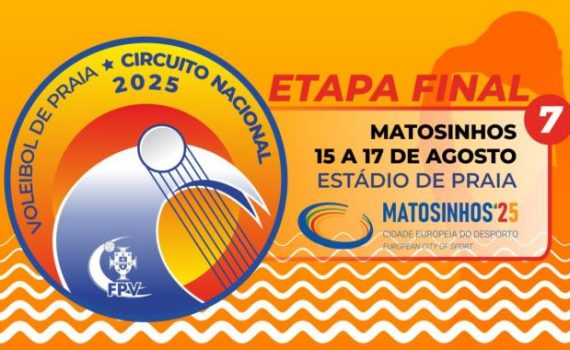 A 7.ª e derradeira etapa do Circuito Nacional de Voleibol de Praia 2025 realiza-se de 15 a 17 de Agosto no Estádio de Praia, em Matosinhos, Cidade Europeia do Desporto 2025. O jogo começam às 9h00 de sexta-feira e todos os jogos serão transmitidas em directo na Volei TV e, […]