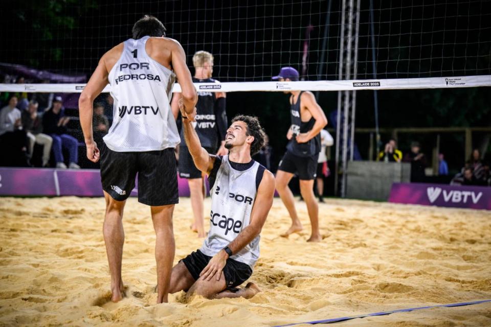 A dupla portuguesa de Voleibol de Praia João Pedrosa/Hugo Campos vai defrontar depois de amanhã (3h00 em Portugal) os checos Ondrej Perusic David Schweiner, campeões mundiais em título, nos oitavos-de-final do Campeonato do Mundo 2025, que decorre em Adelaide, na Austrália.