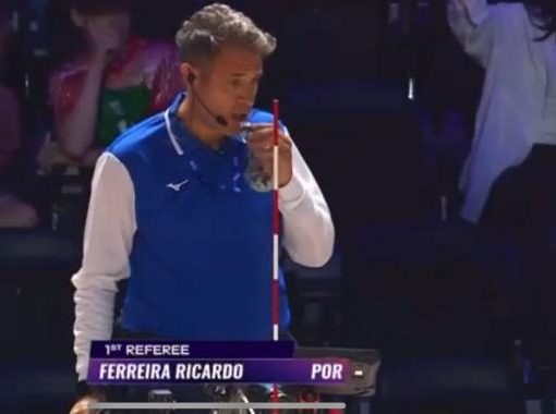 Árbitro de reserva no Sporting CP x Aluron CMC Warta Zawiercie (Polónia), da Pool D da Liga dos Campeões – masculinos, no dia 6 de Janeiro.
