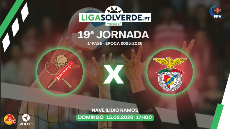 O jogo que opõe o 4.º e o 5.º classificados da Liga Solverde.pt, respetivamente Leixões SC e SL Benfica, é o destaque maior na 19.ª jornada e merece honras de transmissão em direto na Volei TV e A Bola TV, podendo ser seguido, via live streaming, aqui