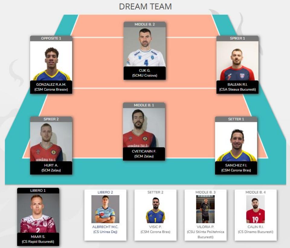 Na Divizia A1, o Zalau recebeu e derrotou, ontem, o CS Rapid Bucuresti por 3-2 (25-21, 23-25, 25-15, 31-33 e 16-14). Filip Cveticanin rubricou uma excelente exibição, coroada com 15 pontos, bem distribuídos por 7 ataques (78% eficácia), 5 blocos e 3 serviços, o que guindou o central português ao Dream Team da jornada.