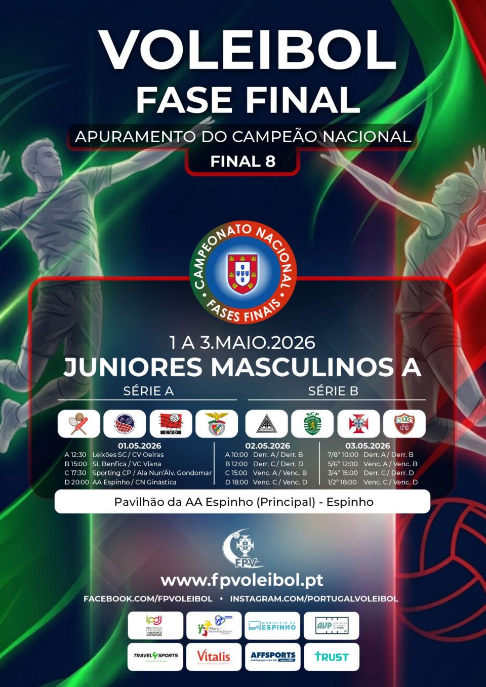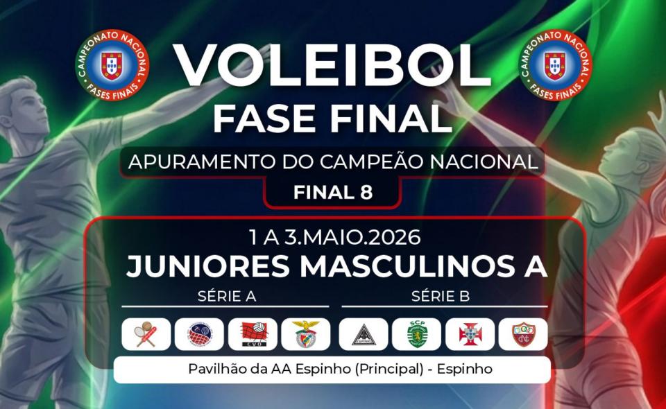 O Pavilhão da Associação Académica de Espinho será o palco, entre os dias 1 e 3 de maio de 2026, da fase final de apuramento do campeão nacional de Juniores Masculinos A.