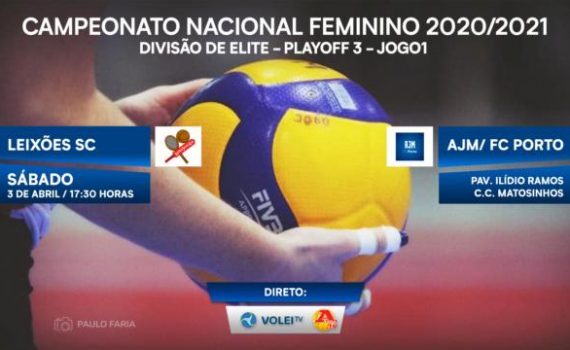 O Leixões SC x AJM/FC Porto, 1.º jogo do Play-off 3 da Divisão Elite do Campeonato Nacional de Seniores Femininos, realiza-se no dia 3 de Abril (sábado) e tem transmissão em directo (17h30) na Volei TV e n’A Bola TV. Este jogo inaugural do Play-off do título terá por palco […]