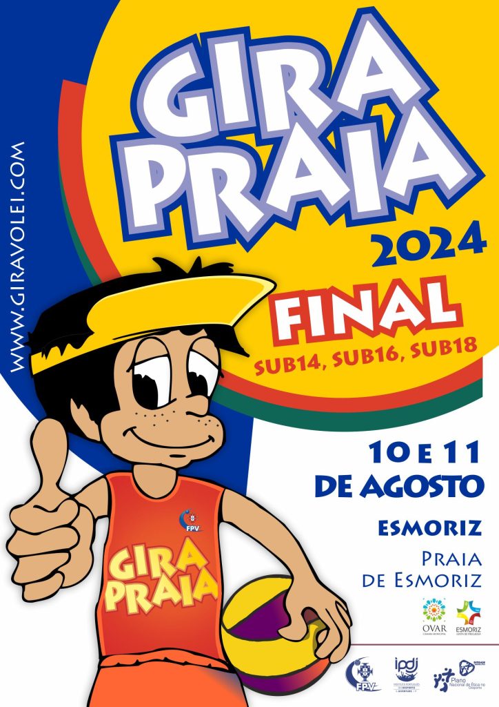 As finais do Gira-Praia 2024 são organizadas pela Federação Portuguesa de Voleibol em colaboração com a Câmara Municipal de Ovar e Junta de Freguesia de Esmoriz. Em competição estão os escalões de Sub-14, Sub-16 e Sub-18 masculinos e femininos que disputam no fim-de-semana de 10 e 11 de Agosto na Praia de Esmoriz, os títulos de Campeões Nacionais 2024!
