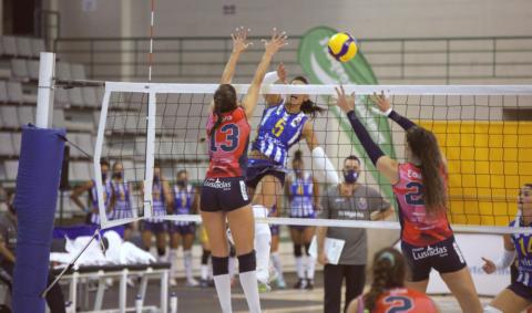 No segundo set, com Luana Gomes no serviço e Kátia Oliveira no ataque, a